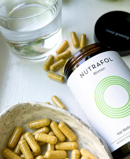 Nutrafol is a popular hair growth supplement made with a mix of vitamins, minerals, botanical extracts, and adaptogens.